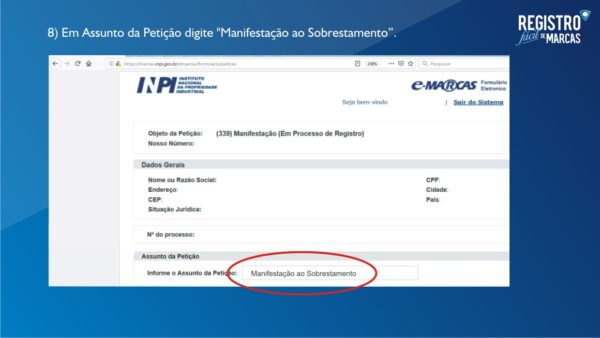Aqui você vai receber todas as orientações de como apresentar-se ao INPI para entrar com a Manifestação ao Sobrestamento da sua Marca. Saberá como redigir o documento (recebe Modelo de Manifestação editável em Word), além de protocolar da maneira certa e acompanhar o processo. E ainda (antes de protocolar) vamos analisar o texto e pontuar possíveis melhorias na peça. Ideal para o empreendedor que deseja pagar menos na Manifestação e protocolar com mais segurança argumentativa.